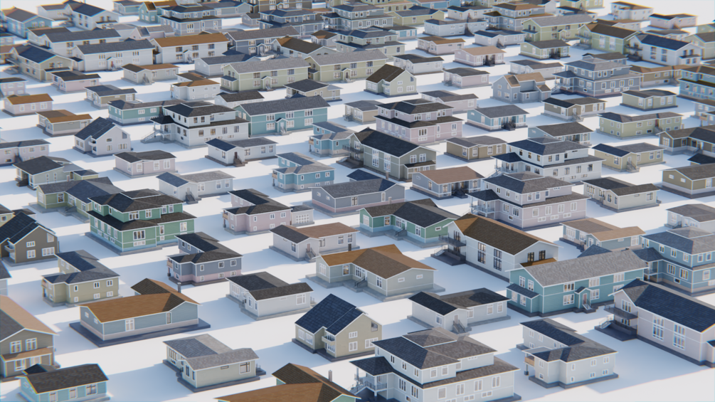 This is a geometry nodes system for scattering houses along faces, helping the artists to create big neighborhood in seconds. Also all houses and elements are organized in collections, very simple and easy to use individually. Its ideal for Archviz and other 3D tasks.