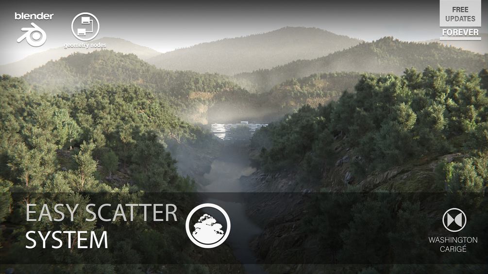 This product is a result of my personal daily effort in Archviz to create a symple and efficient scatter system in Blender using Geometry Nodes, that address most of my needs. Its symple, easy to use, powerful and suitable for large environments.